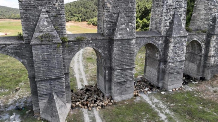 İstanbul 'da etkili olan sıcak hava, hayvanları da bunalttı. Alibey Barajı’ndaki koyunlar çareyi Mağlova Kemeri’nin altına sığınmakta buldu. Gölgede serinleyen koyunlar güneşten korundu. Koyunların birbirlerine sokularak sadece gölgede durmaya çalışmaları ise renkli görüntüler oluşturdu.